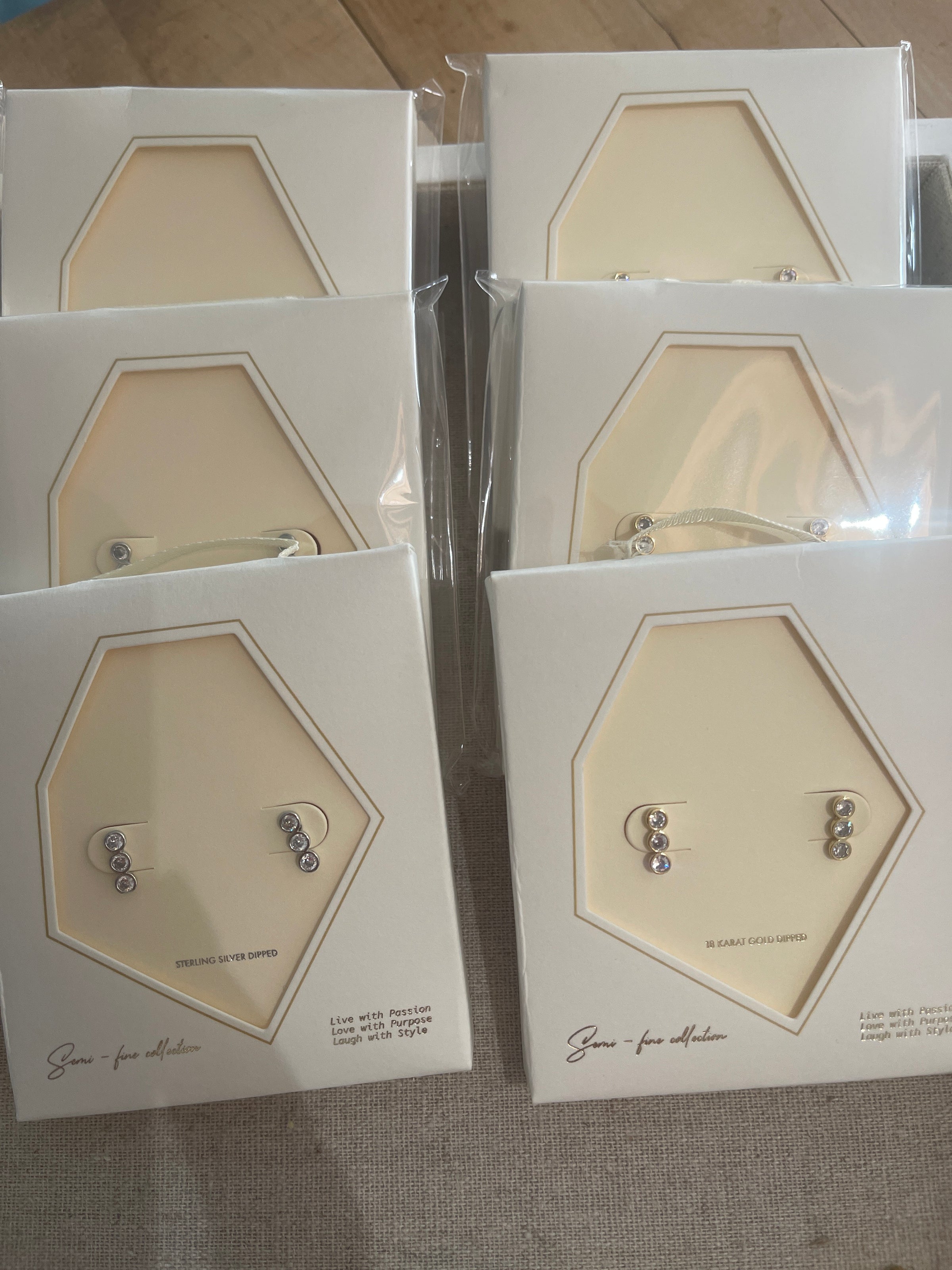 Three shimmering rhinestones linked together for instant sparkle. These fun studs work for everyday wear or when you want to dress things up—just a hint of glam that feels just right.